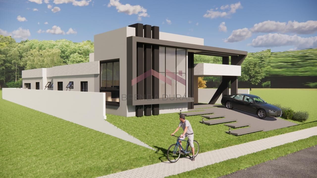 Projeto arquitetônico moderno, com pé direito duplo, 4 suítes, dependência de empregada mais banheiro, lavabo, piscina, 225m2 de área construída, terreno com 452 m2 e área gourmet.